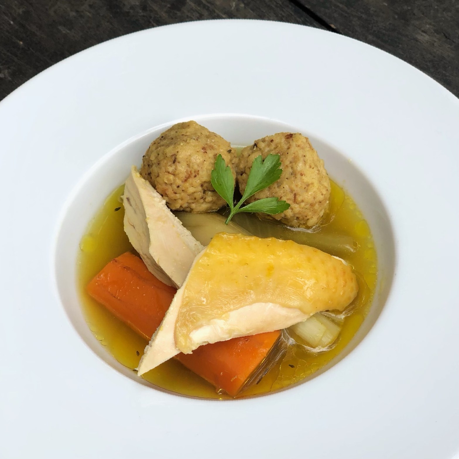(Automne – Menu 2 – lundi) Longtemps considéré comme la « pénicilline juive » ce bouillon, avec sa belle couleur dorée, a tout pour plaire. Bon, le comparer à un antibiotique serait un peu exagéré (quoique certains poulets en sont remplis 😉), mais le poulet fermier et ses pattes permettent de confectionner un bouillon riche en collagène,Lire la suite « Goldene Yoïch et kneidlech »